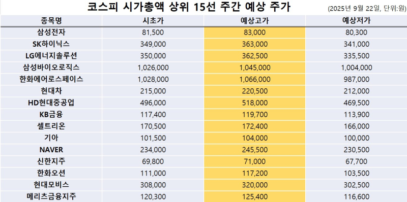 <빅터뉴스 주가 예측> 코스피 시가총액 상위 15선_9월 22일