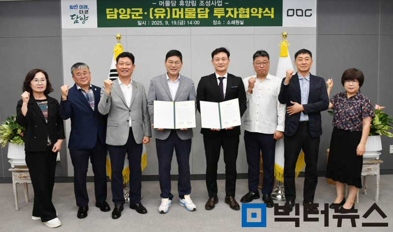 담양군은 (유)머물담과 금성면 원율리 일원에 ‘머물담 휴양림 조성사업’을 추진하기 위한 투자협약을 체결했다고 22일 밝혔다.