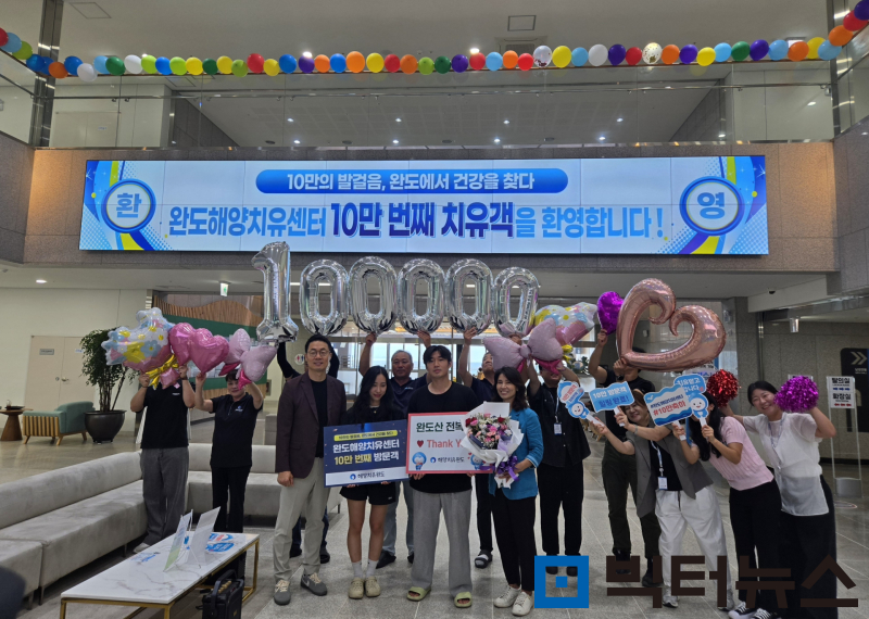 10만 번째 치유객은 광주시에서 친구와 함께 센터를 찾은 김아로씨에게 전복 세트와 센터 초대권이 경품으로 전달됐다.김씨는 “SNS에서 완도해양치유센터 체험 후기 영상을 보고 방문하게 됐는데 10만 번째 치유객이 돼서 영광스럽다”며 “해양치유를 직접 해보니 스트레스가 풀리고 피부 보습에 너무 좋아서 꼭 재방문하고 싶다”고 밝혔다.