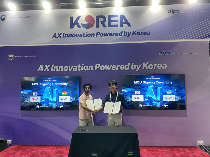 두바이 GITEX GLOBAL2025에 참가하고 있는 국내 AI 솔루션 기업 에프원소프트가 인도 IT 전문기업 라아인 테크놀로지(LAAYN Technologies)와 전략적 업무협약(MOU)을 체결했다고 16일(현지시각) 밝혔다.