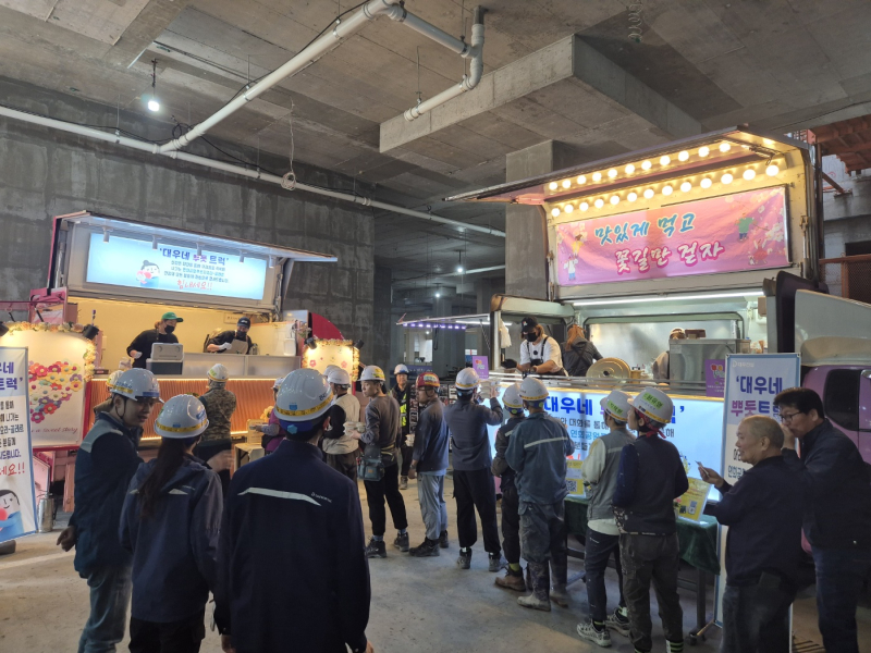 대우건설은 국내외 현장을 대상으로 사기진작 이벤트 ‘대우네 뿌듯트럭’을 진행중이라고 20일 밝혔다. ‘대우네 뿌듯트럭’은 현장 직원들이 직접 작성한 사연, 영상, 롤링페이퍼를 통해 일상과 감동적인 순간을 공유하고, 선정된 현장에는 계절별 간식차(팥빙수, 수박, 분식 등)가 방문해 즐거운 휴식 시간을 선사하는 프로그램이다. 특히 시즌 2부터는 영상 콘텐츠 접수가 도입되어 현장의 생생한 모습을 보다 역동적이고 현실감 있게 담아낼 수 있도록 발전했다.