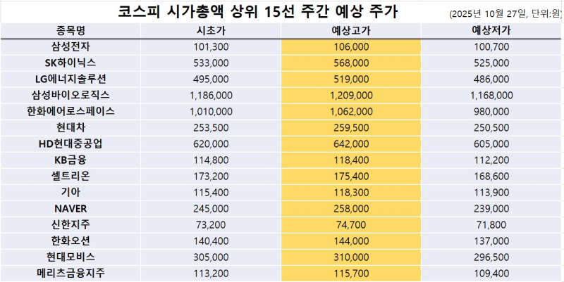 <빅터뉴스 주가 예측> 코스피 시가총액 상위 15선_10월 27일