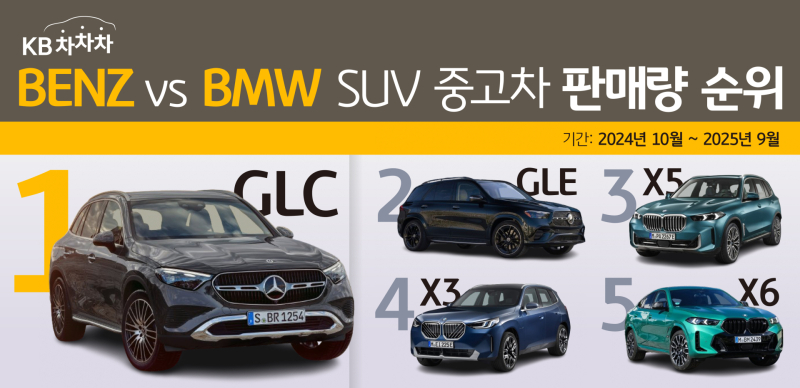 벤츠 GLC-클래스에 이어 2위는 벤츠 GLE-클래스, 3위는 BMW X5, 4위는 BMW X3, 5위는 BMW X6로 나타났다. 평균 판매 시세의 경우 BMW X6(8,829만원), BMW X5(8,753만원), 벤츠 GLE-클래스(8,641만원), BMW X3(5,827만원), 벤츠 GLC-클래스(5,155만원)순이었다.